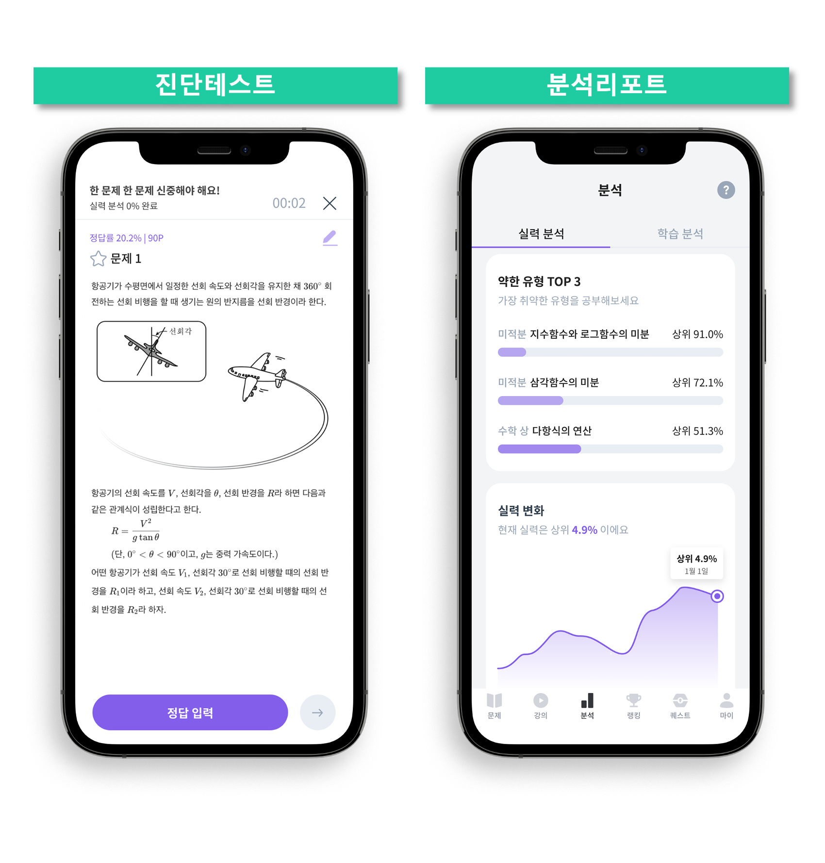 튜링의 AI는 빠르고 정확하게 학생의 현재 실력을 진단합니다.